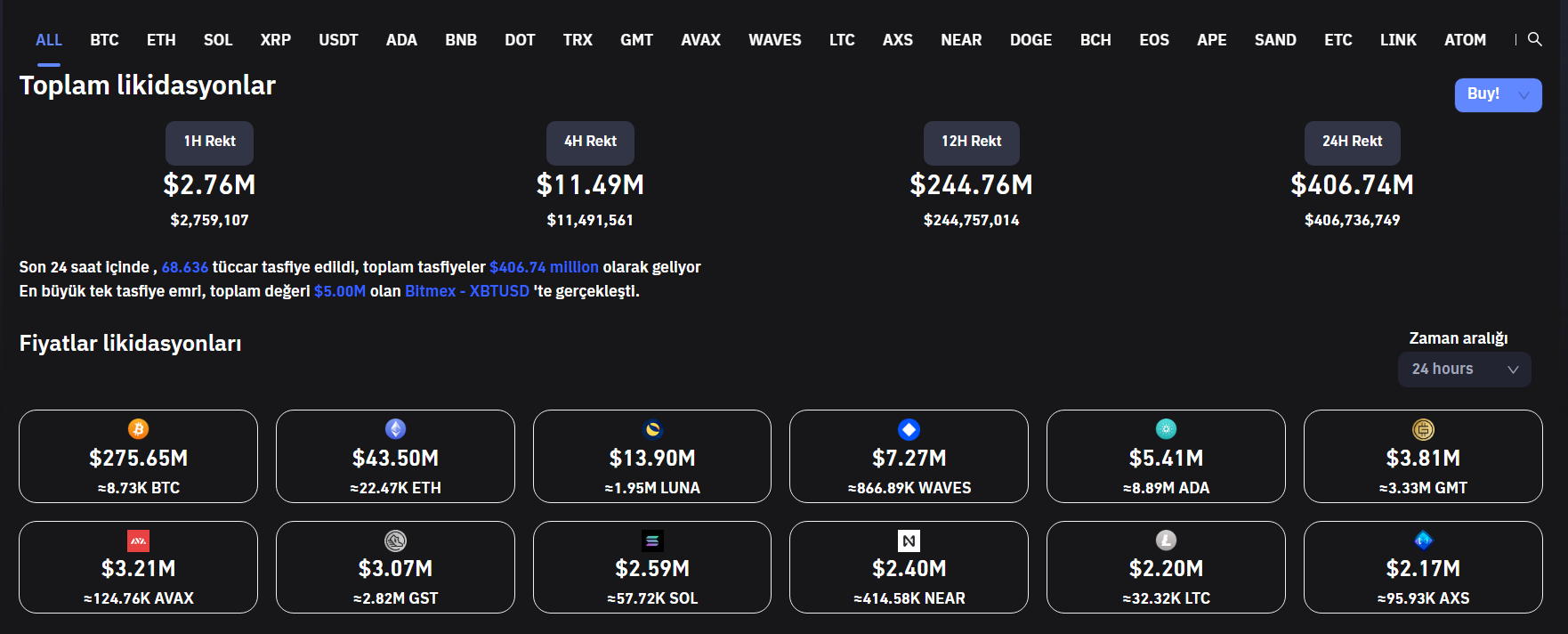 CoinGlass’ın paylaştığı verilere göre ise son 24 saat içerisinde kripto piyasasında 400 milyon dolardan fazla pozisyon likit edildi.