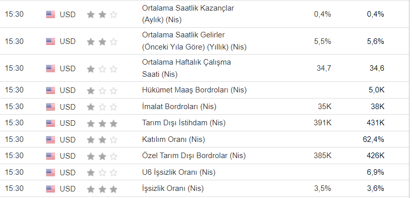 Yatırımcılar bugün itibariyle TSİ 15.30’da açıklanacak olan ABD tarım dışı istihdam ve işsizlik oranlarına kenetlenmiş durumda.