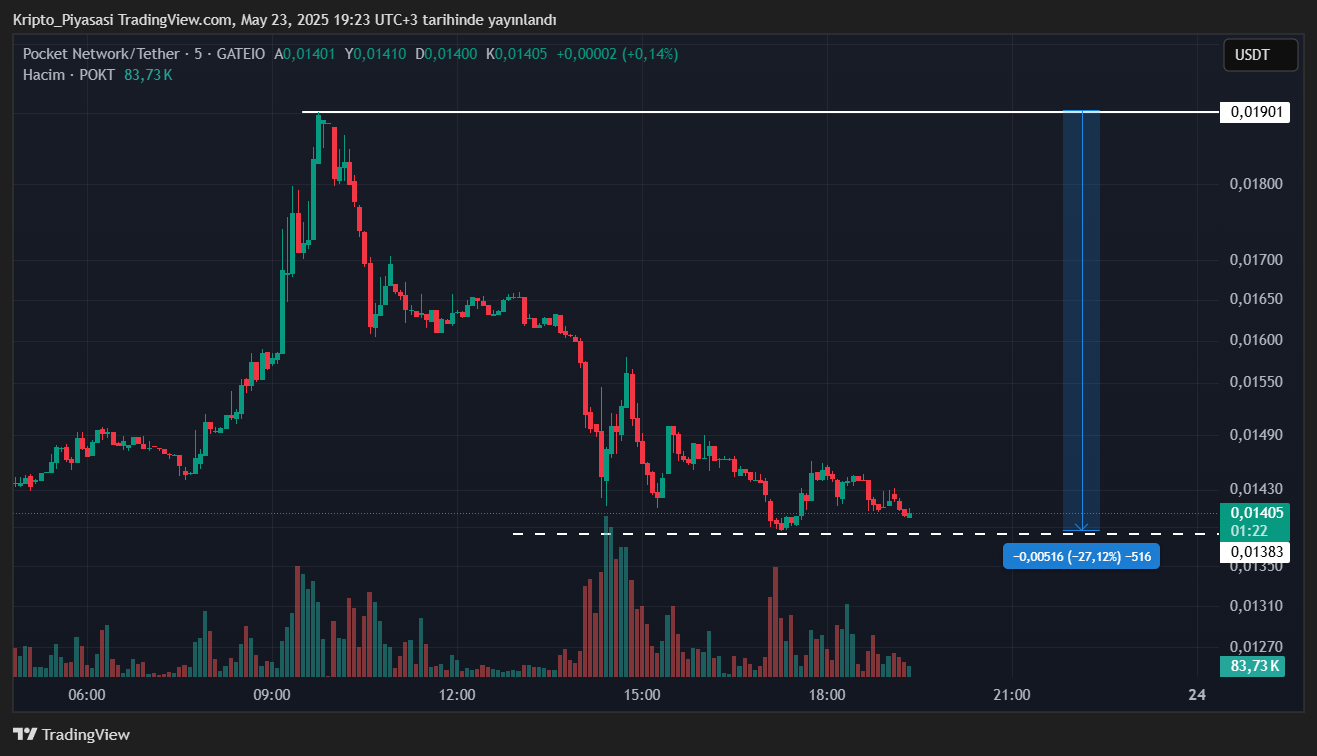 Bugün itibariyle 0.0190 dolara kadar bir yükseliş yaşayan POKT, Bybit delist kararı ve ABD Başkanı Trump’ın vergi açıklamalarıyla düşüşe geçti. POKT’un günlük zirveden %30’a yakın değer kaybettiği görüldü.