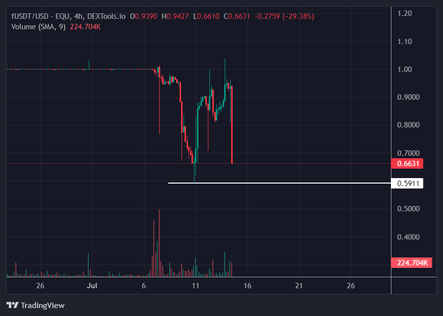 Fantom blok zincirinde üretilen Frapped USDT (fUSDT), 6 Temmuz tarihinde 1 dolara olan sabitliğini kaybetmişti. Bu gelişme sonrasında fUSDT’nin 0.59 dolara kadar gerilediği görüldü.