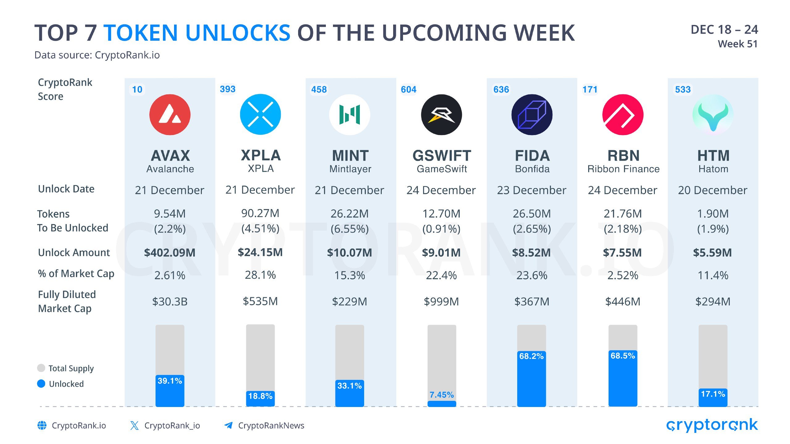 Önümüzdeki hafta itibariyle ise bazı altcoin‘ler de kayda değer kiilit açılımların olacağı görülüyor. Kilit açılımları olan ürünler satış baskısıyla karşı karşıya kalabilmekte.