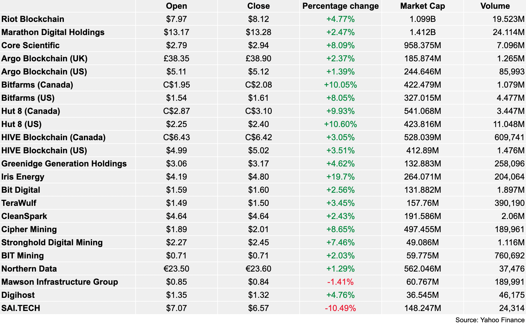 The Block Crypto’nun aktardığı bilgilere göre, Bitcoin madencilik şirketleri son günlerde toparlanmaya başladı. Temmuz ayında 426 adet BTC satışı yapan Clean Spark hisseleri dahi son yaşananların ardından yükselişe geçmiş durumda.