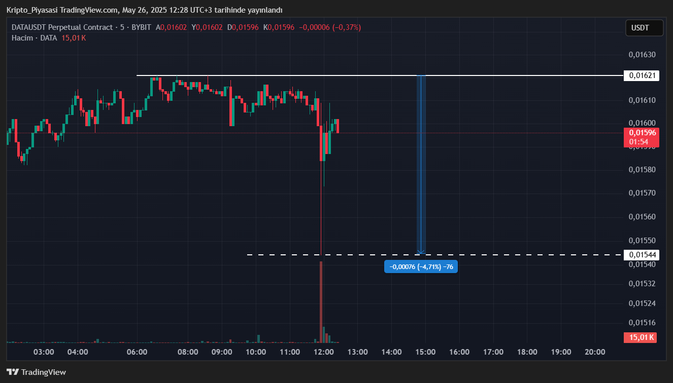 Bybit borsasının vadeli delist kararlarından bir süre sonra o altcoin’i spot piyasadan da kaldırdığını unutmamak gerekiyor. Son alınan delist kararı, DATA fiyatında anlık -%5’lik bir düşüşün yaşanmasına neden oldu.