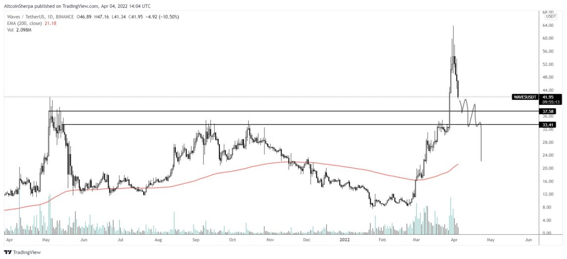 Sherpa analizlerini paylaştığı sırada Waves 40 dolar seviyelerinden işlem görüyordu. Paylaştığı grafiklerde aktardığı bilgilere göre popüler analist WAVES‘in 20 dolar seviyesine kadar kademeli bir şekilde değer kaybedeceğini ön gördü.