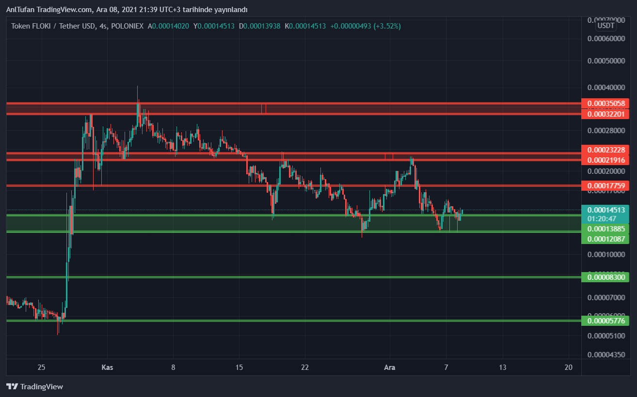 0.0001388 – 0.0001200 dolar seviyelerinde bulunan destek seviyesini aşağı yönlü kırması durumunda 0.00008300 dolar desteğine kadar gerilmesi beklenen Floki Inu’nın, böyle bir düşüş gelmesiyle sert bir şekilde değer kaybetmesi beklenmiyor. Büyük risk ve büyük kazanç barındıran Floki Inu’da yatırım yaparken çok dikkatli olunması gerekiyor.