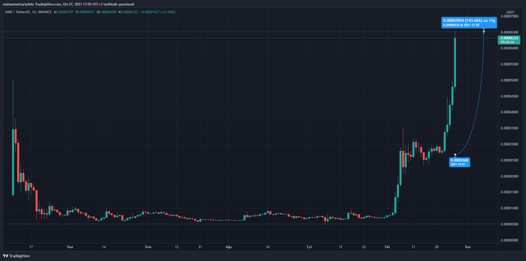 Geçtiğimiz bir kaç haftalık serüvende Shıba Inu çok iyi performans sergilediği aşikar. Bununla beraber tüm kripto yatırımcılarının ve hatta kurumsal firmaların dahi dikkatini üzerine çekmeyi başarmış görünüyor.