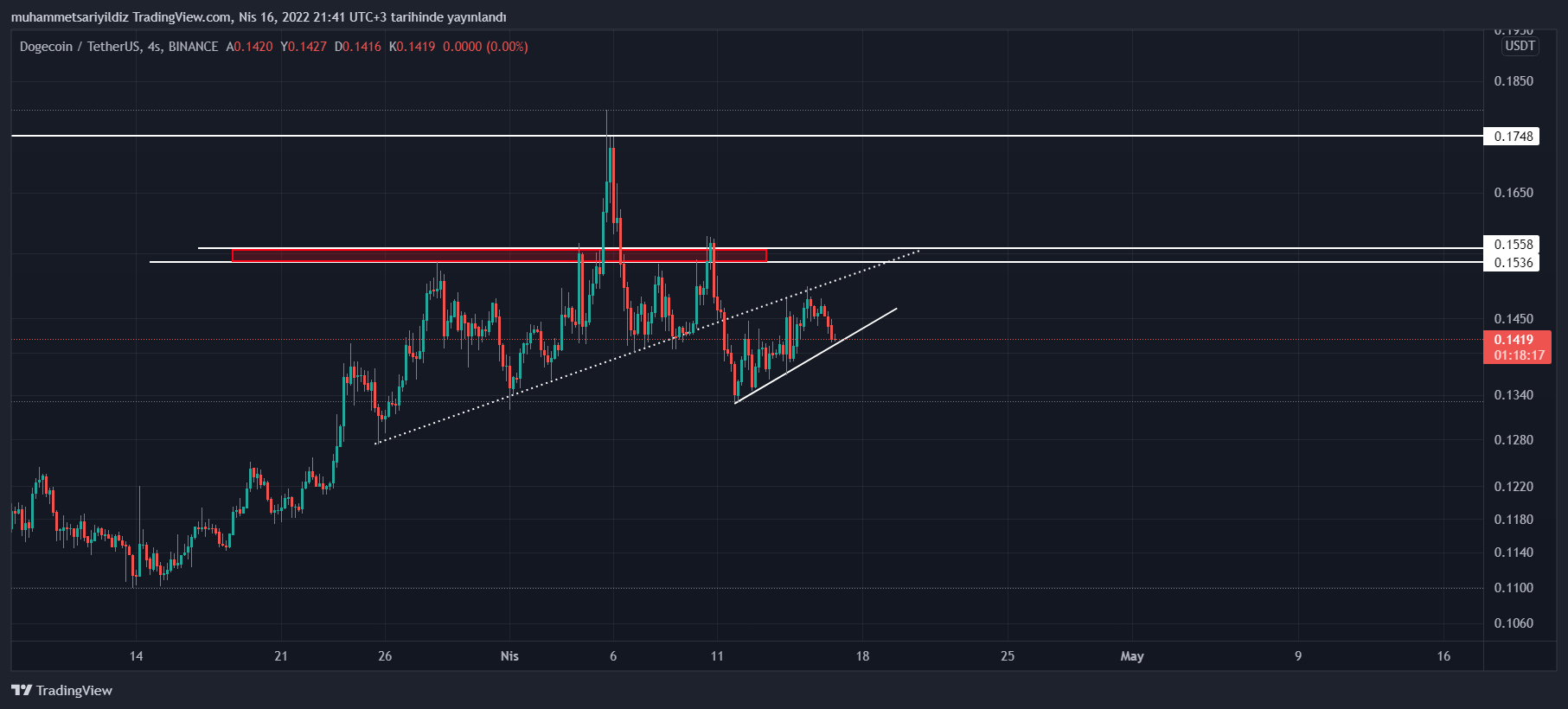 Sert yükselişler yaşaması için 0.1500 – 0.1550 dolar direncini aşması gereken Dogecoin, bu direnci geçmesinin ardından kısa sürede tekrardan 0.1740 dolar direncine ulaşabilir.