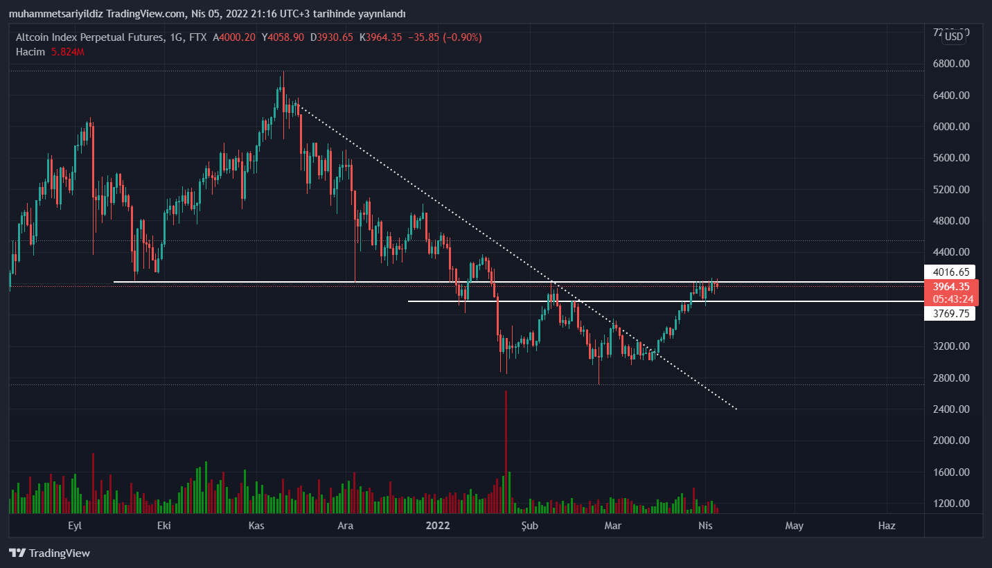 Altcoinlerin genel endeksi olarak kabul edilen Altcoin İndex, an itibariyle 4000 dolar direnç seviyesinden reddedildi.