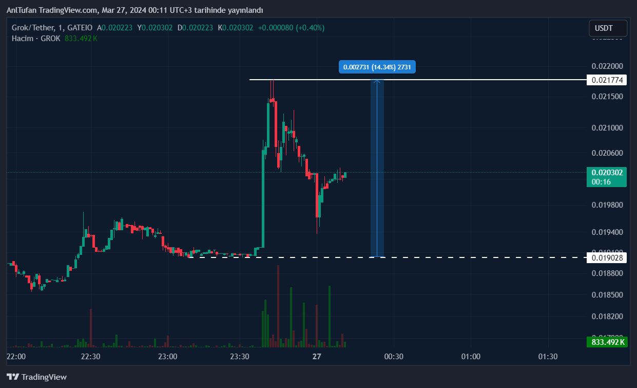 Sürecin ilerlemesiyle birlikte bu yükselişlerin büyük bir kısmını kaybeden GROK, yine de son 24 saat içerisinde %20 oranında değer kazanmış durumda.
