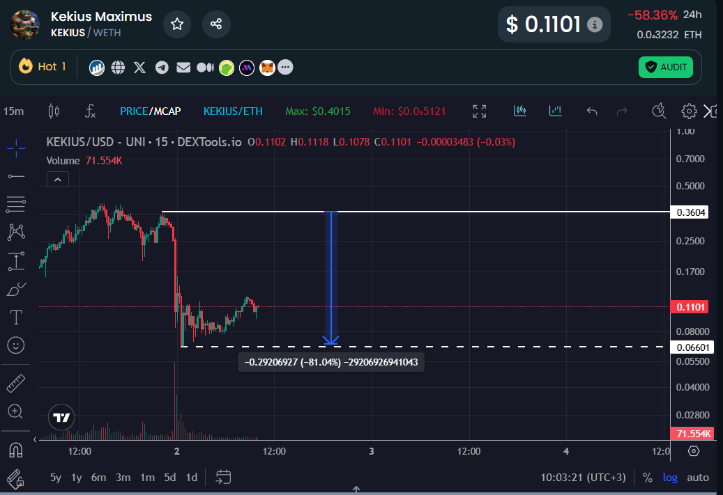 Kekius Maximus (KEKIUS) isimli memecoin Elon Musk’ın bu değişiklerini yapmasının ardından ise büyük bir çöküş yaşadı. KEKIUS kısa bir süre Musk’ın X hesabı ismini değiştirmesiyle birlikte 60 katlık dev bir artış yaşamıştı.