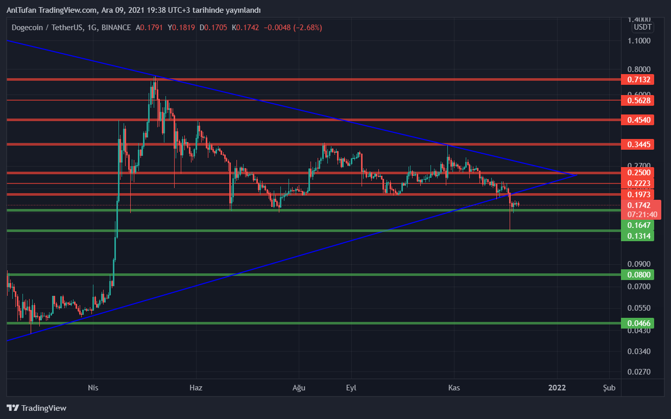 0.164 dolar seviyelerinde major bir destek seviyesi bulunan DOGE, 6 gündür bu destek seviyesine iğneler atıp tekrardan yukarı yönlü hareketini sürdürmeye devam ediyor.