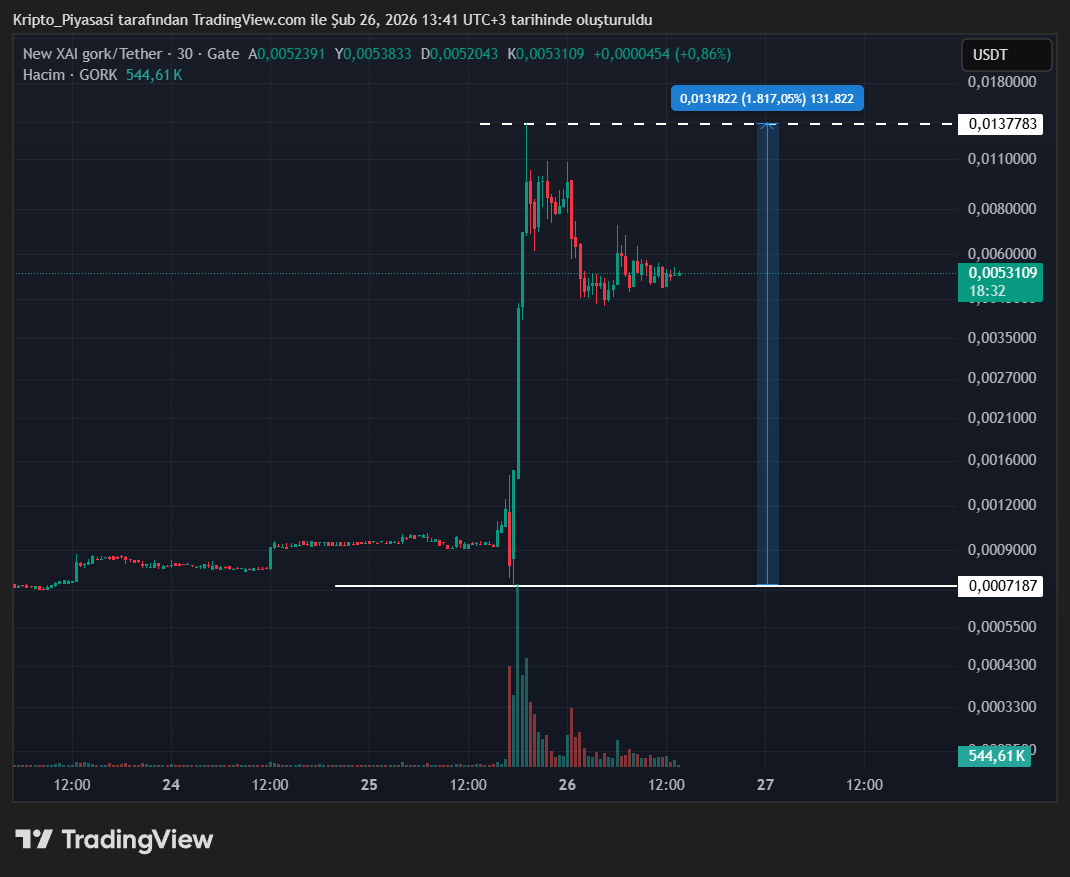 Bu gelişme sonrasında ise GORK fiyatında sert bir yükseliş yaşandı. Bir anda 20 katlık bir ralli yaşayan GORK, volatil hareketlerine devam edebilir.