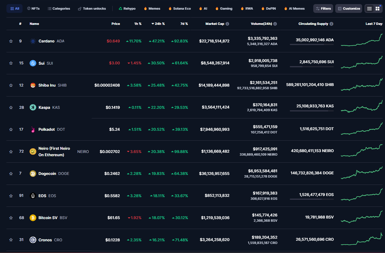 CoinMarketCap’den alınan verilere göre birçok dev piyasa değerine sahip kripto varlık bugün çok ciddi yükselişler yaşadı. İşte en çok artış yaşayan bazı major altcoin’ler: