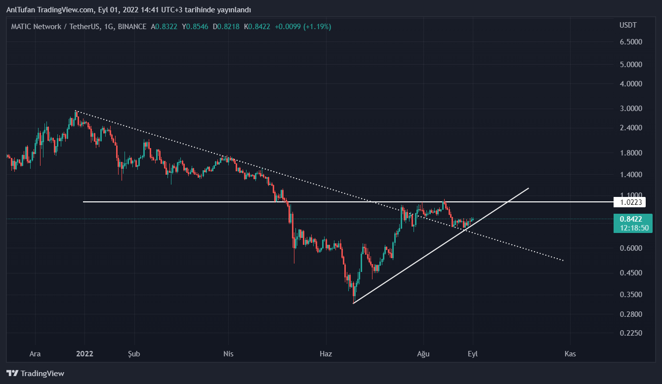 Düşen trendini kırmayı başaran Polygon, major bir yükselen trend oluşturarak 1 dolar direncini tekrardan denemesi beklenmekte.