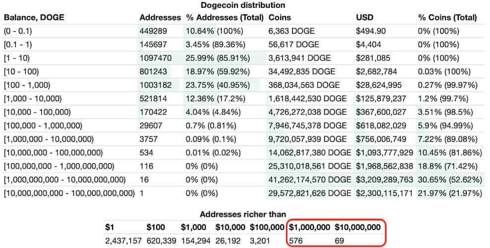 1 Ocak’ta 646 adet Dogecoin milyonerine bulunuyorken, şuan itibariyle ise 1.341 adet DOGE milyoneri bulunmakta.