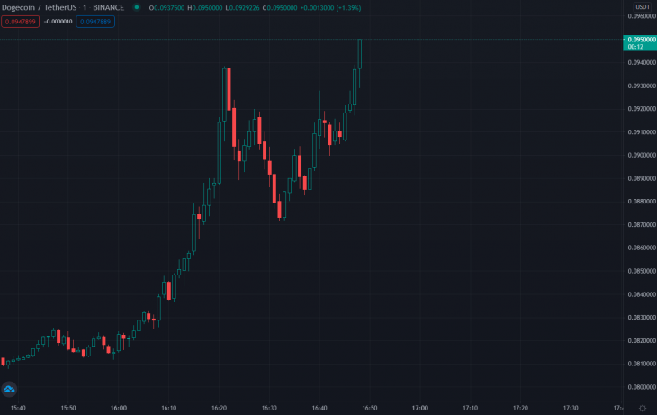 Dogecoin bu yazının kaleme alındığı an itibarıyla 0,09 dolar seviyesinden işlem görüyor ve o tarihlerde ulaşamadığı noktaya kadar çıkarak rekor kırdı. DOGE/USDT 24 saat içerisinde %28, 7 günde %52 yükseliş elde ederek tarih boyunca ulaşamadığı 0,1 dolara yaklaştı. DOGE fiyatı 29 Ocak tarihinde kısa sürede %800 yükseliş elde etmesine rağmen 0,087 dolar seviyesinde sıkışıp kalmıştı.