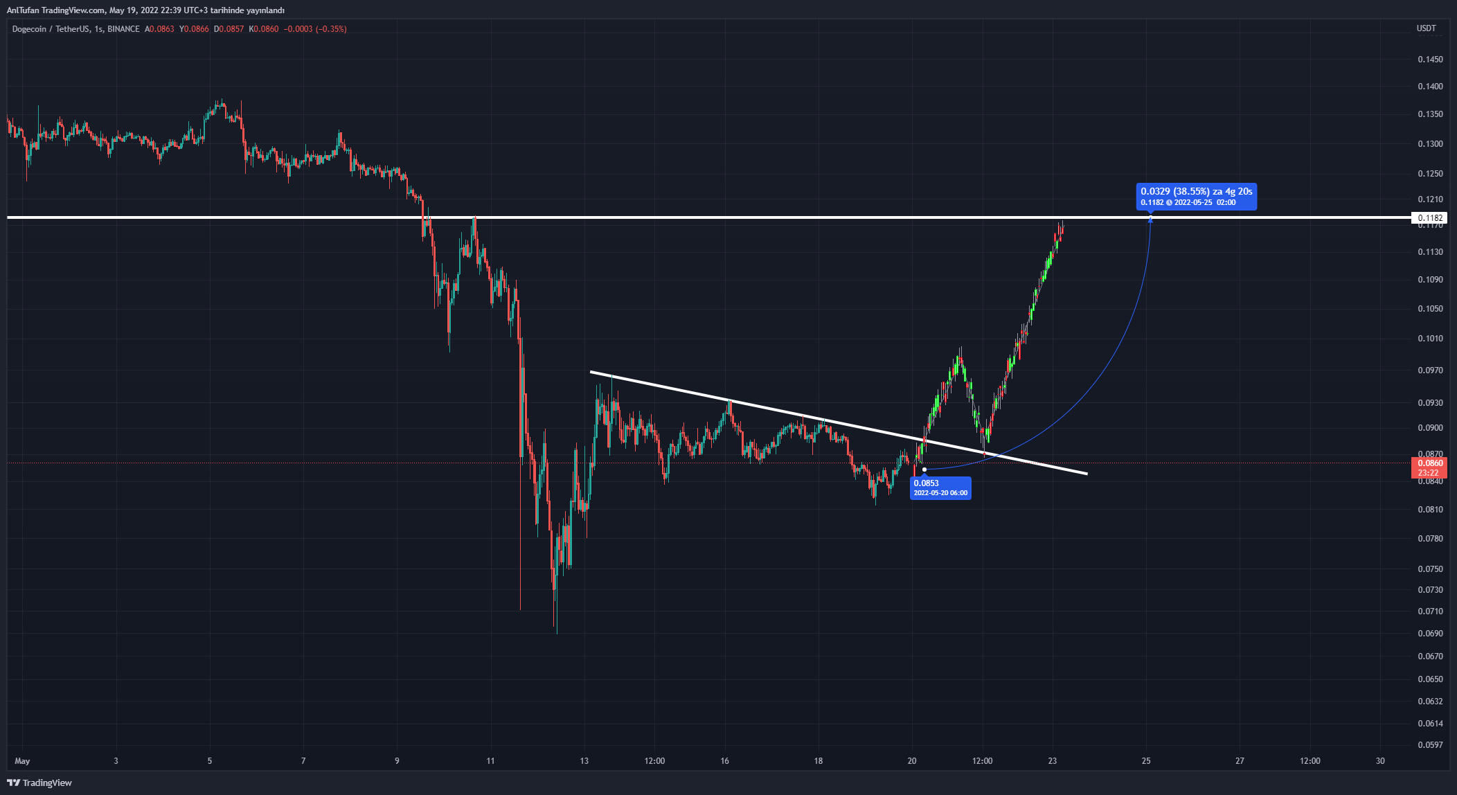 Dogecoin, böyle bir yükseliş yaşaması halinde %38’den fazla değer kazanarak, yatırımcılarını memnun edecek gibi gözüküyor.