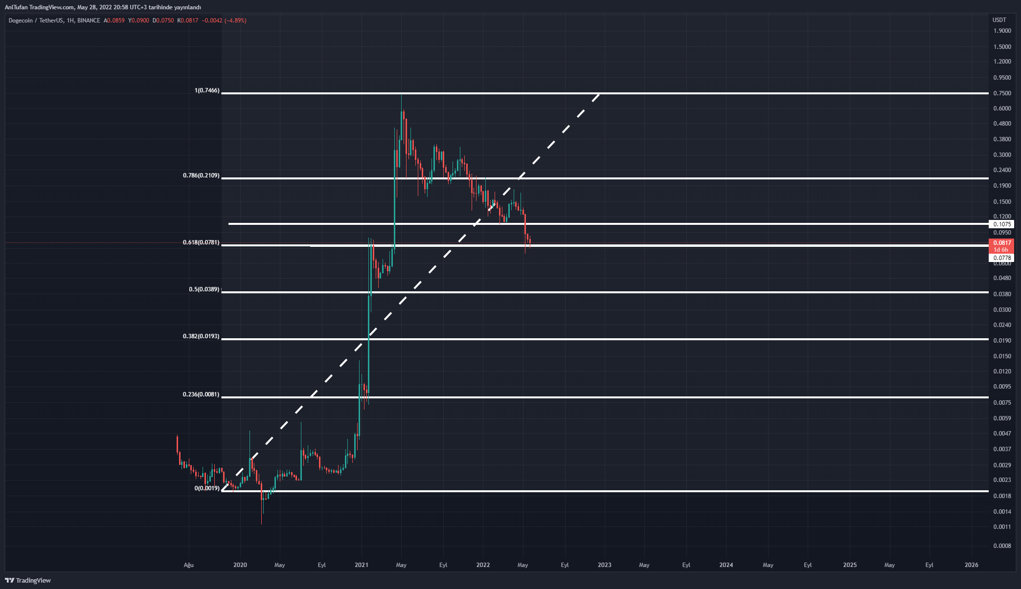 Haberimizin yazıldığı esnada 0.081 dolar seviyelerinde işlem gören Dogecoin, büyük resmin 0.618 fibonacci desteğinin hemen üzerinde konumlanmakta.