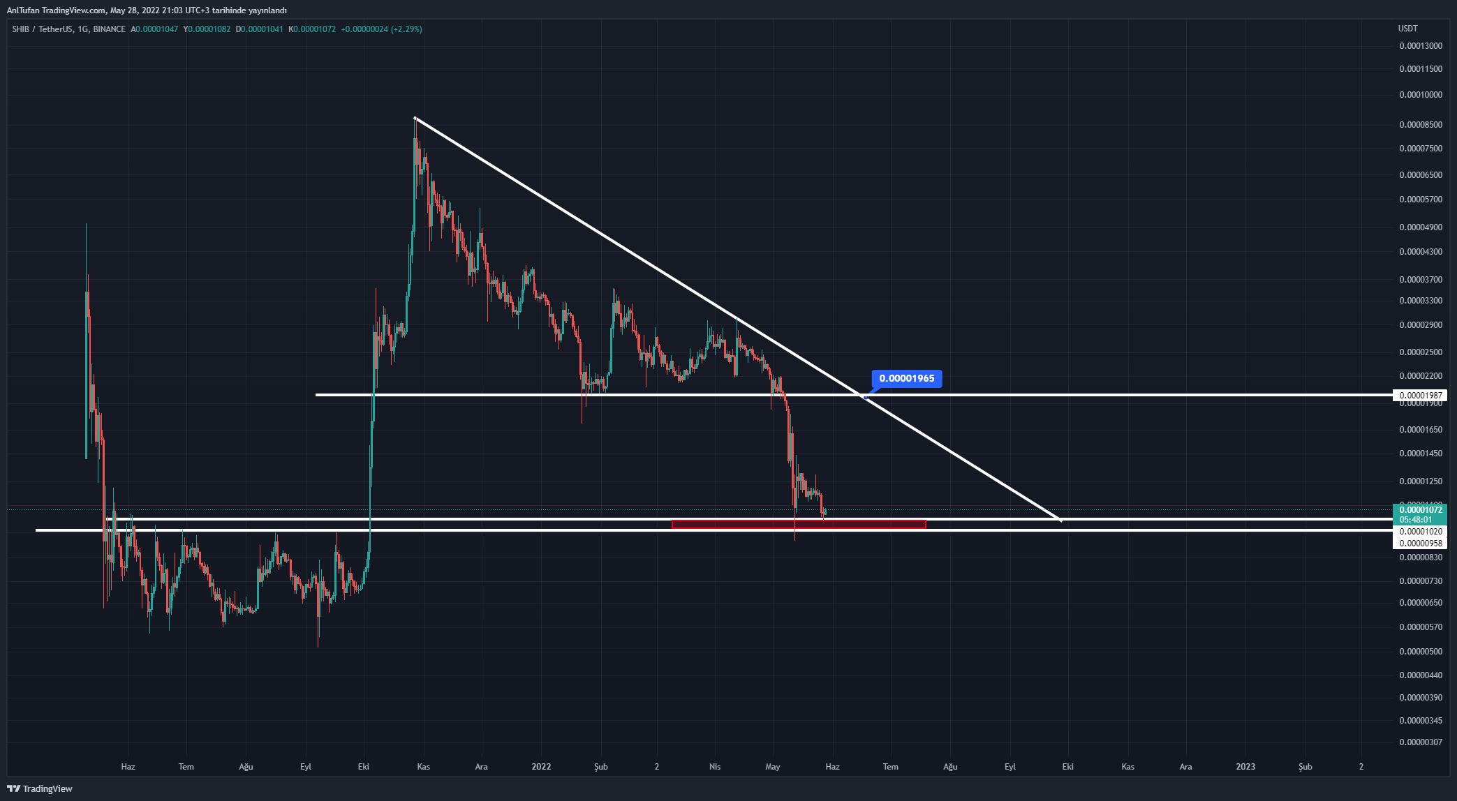 İlerleyen günlerde Bitcoin‘in de değer kazanmasıyla birlikte yükselişe başlamasını beklediğimiz SHIB, kısa bir süre içerisinde düşen trendi ile yatay destek seviyesi olan 0.00001965 dolara ulaşabilir.