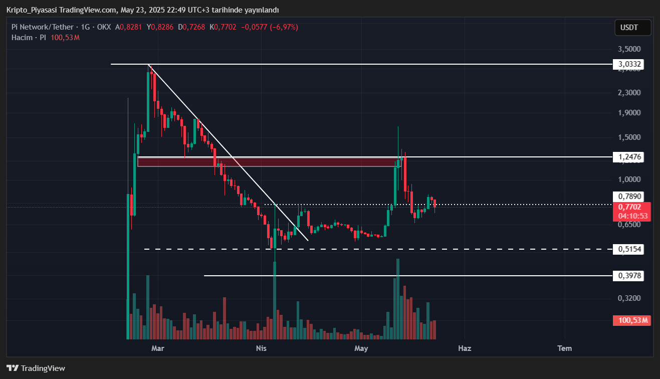 Popüler altcoin Pi Coin’in (PI) son durumuna baktığımızda, bugün özelinde %7 oranında değer kaybettiği görülüyor. PI bu son düşüşlerden kötü etkilendi ve kritik destek olan 0.789 doların altına sarktı.