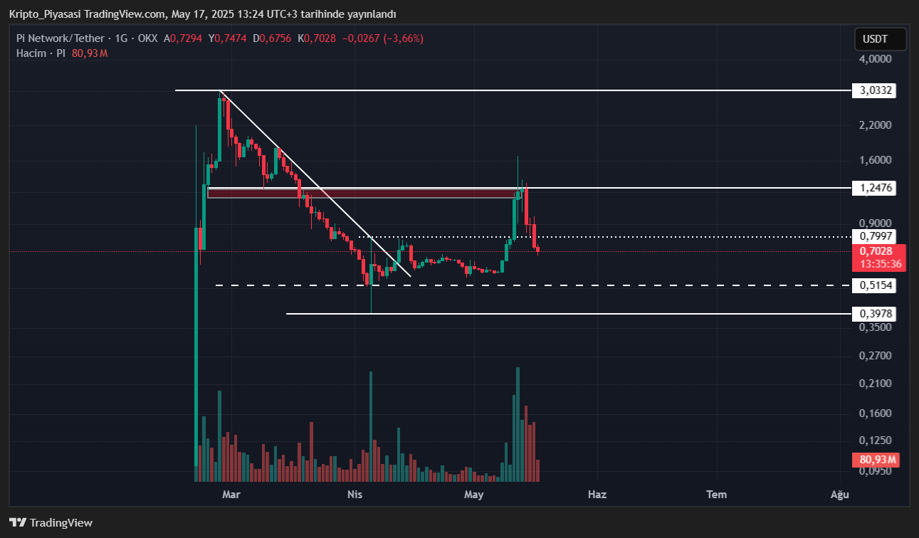 Birçok yatırımcı 14 Mayıs tarihinde Pi Coin’in paylaşacağı duyuruyu bekliyordu. Pi Coin’in büyük duyurusunun beklentilerin altında kalması, PI fiyatındaki satış baskısını artırdı.