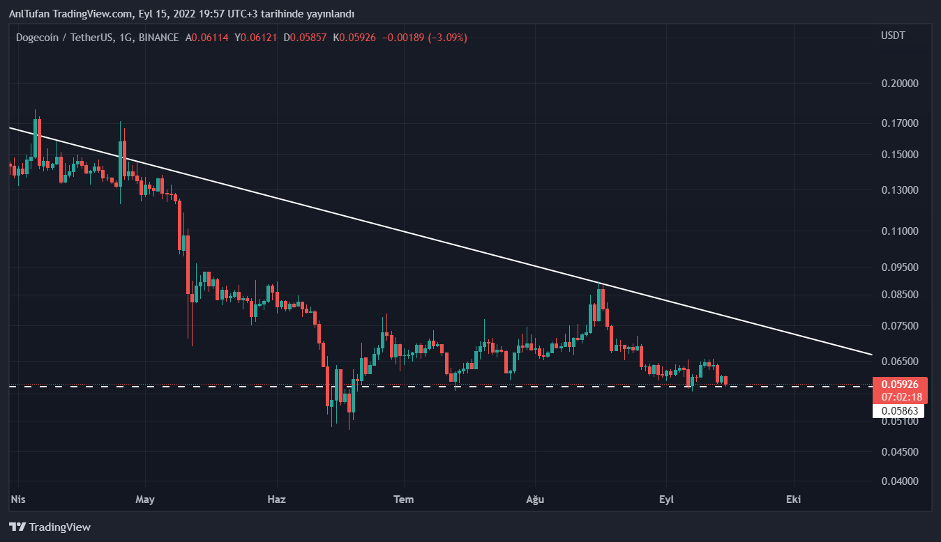 Haberimizin yazıldığı esnada 0.059 dolar seviyelerinden işlem gören Dogecoin, major destek seviyesinin hemen üzerinde konumlanmakta.