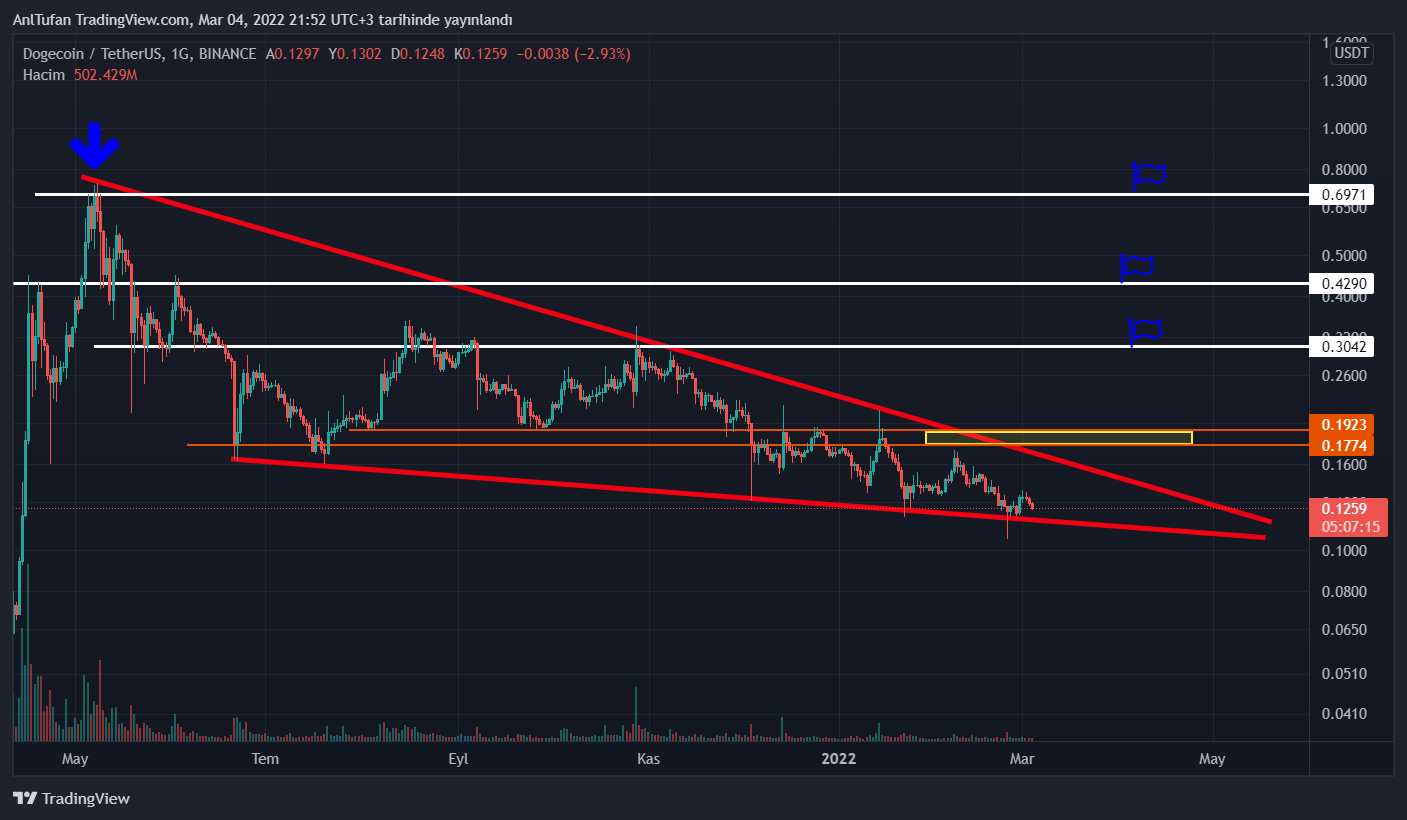 Bu seviyelerde tutunması halinde ilerleyen günlerde 0.18 – 0.20 dolar direncini deneyebilecek olan DOGE, formasyonun üst bandını kırması durumunda ise çok daha sert bir şekilde yükselebilir.