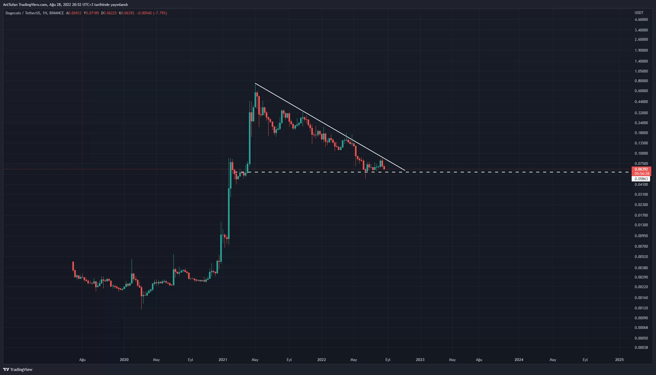 4 temaslı bir major düşen trendi bulunan lider meme coin, ilerleyen süreçte 0.080 dolar direncini aşması halinde hiç beklenmedik yükselişler yaşayabilir.