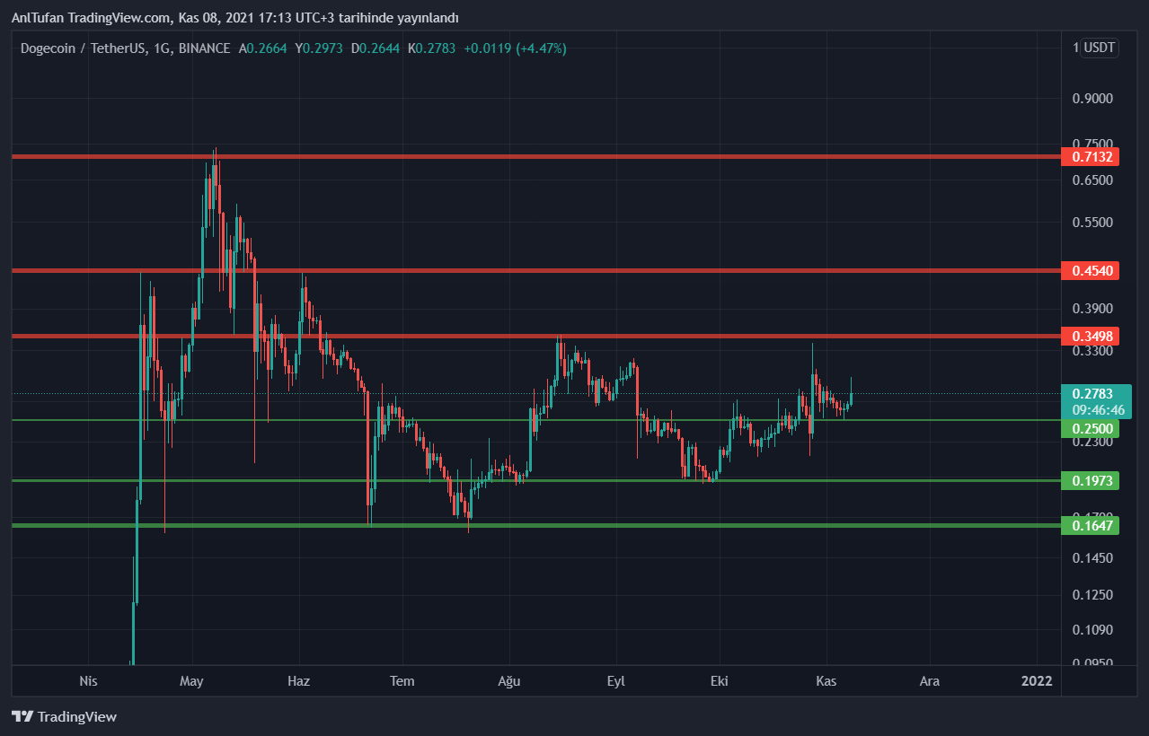 Yayın saati itibariyle 0.2780 dolar seviyesinde bulunan DogeCoin, 0.2500 dolar ara destek seviyesine yakın durumda. DogeCoin yatırımı yapmayı düşünen kripto para yatırımcıları 0.2500 dolar seviyesine gerilemesini bekleyebilirler. 0.2500 dolar desteği ve 0.1973 dolar desteklerinden alım yapabilecek olan kripto para yatırımcıları nerede satış yapmaya başlamalı?