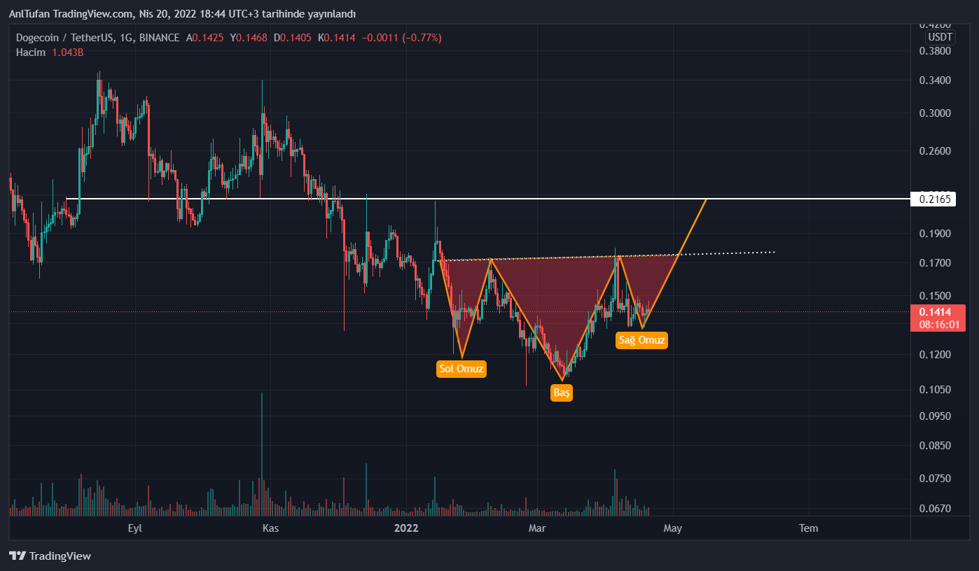 Geçmişten ziyade günümüze baktığımız takdirde ise Dogecoin‘in bir trend dönüş formasyonu olan Ters Omuz Baş Omu (TOBO) formasyonu oluşturduğunu görmekteyiz.