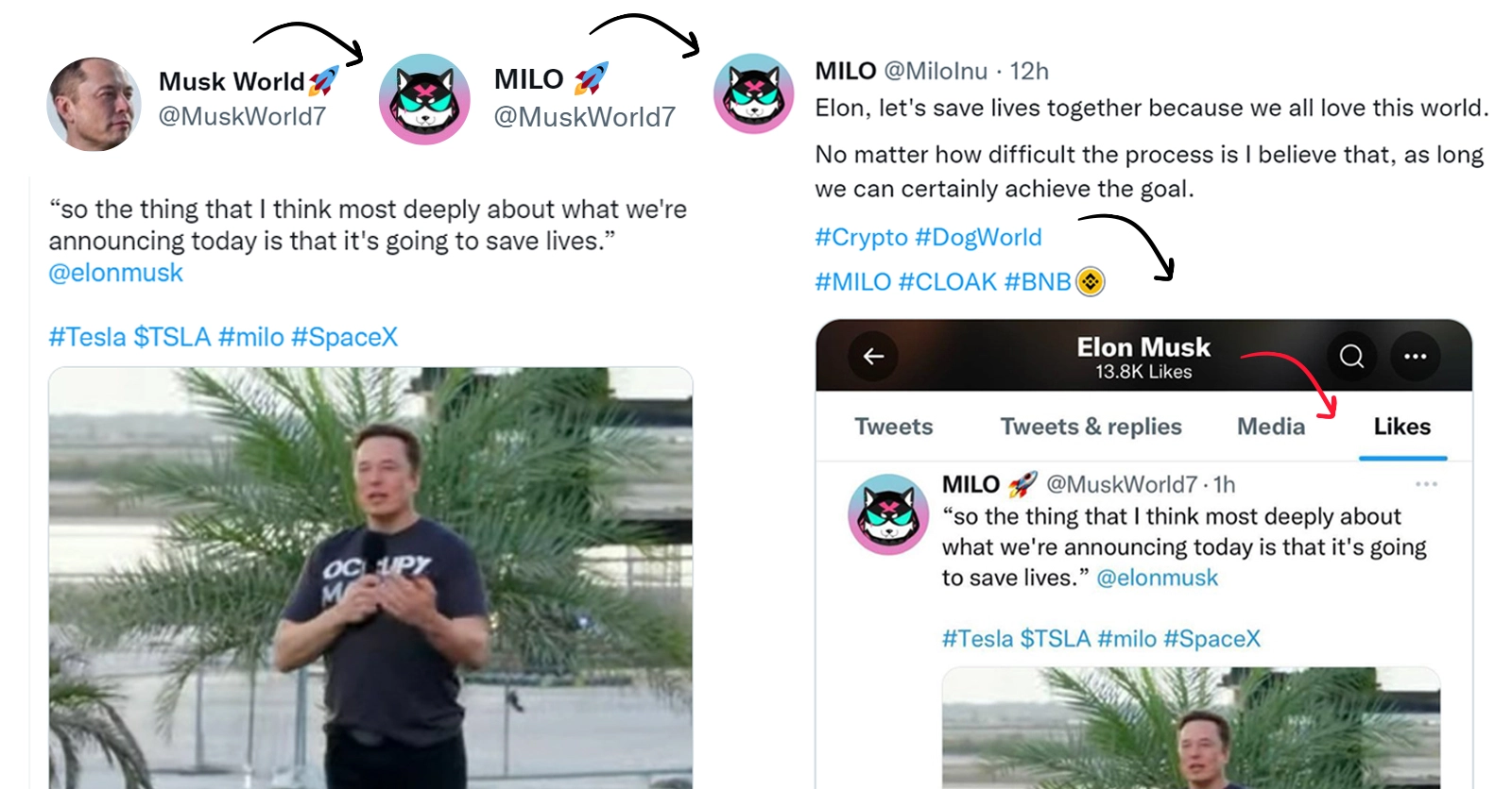 İlk etapta “Musk World” isimli bir tweet hesabı açan Milo Inu Token yatırımcısı, bu Twitter hesabı üzerinden paylaştığı bir post ile Elon Musk’ın dikkatini çekti.