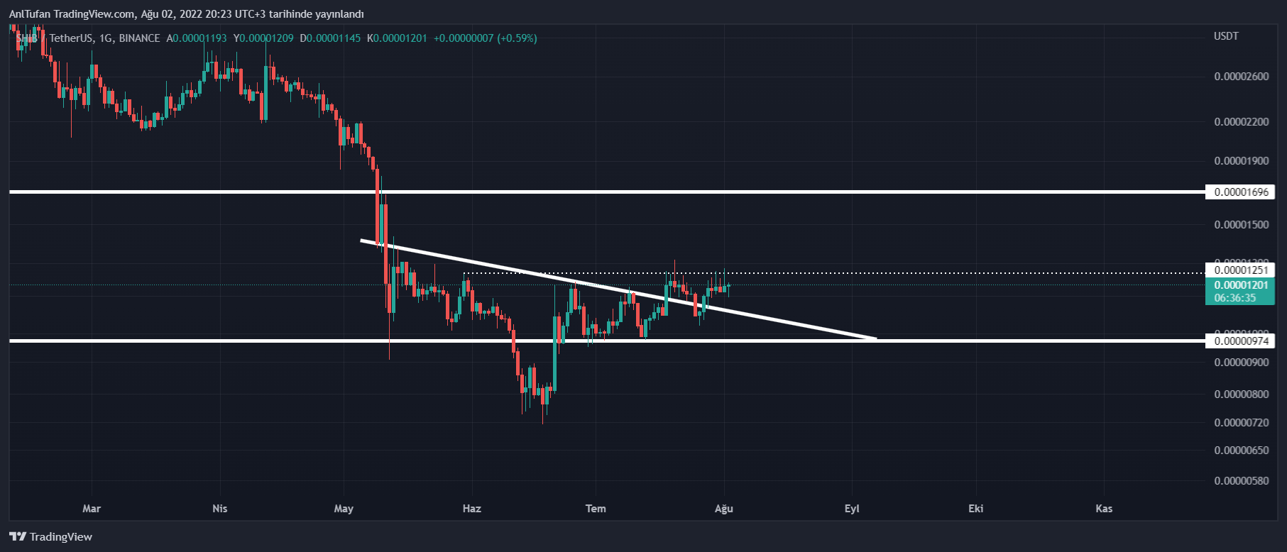 İlerleyen saatlerde son tepe seviyesi olan 0.00001250 doları aşması ile birlikte değerine değer katacağı tahmin edilen SHIB, kısa bir süre içerisinde 0.00001696 dolar direnç seviyesine ulaşabilir.