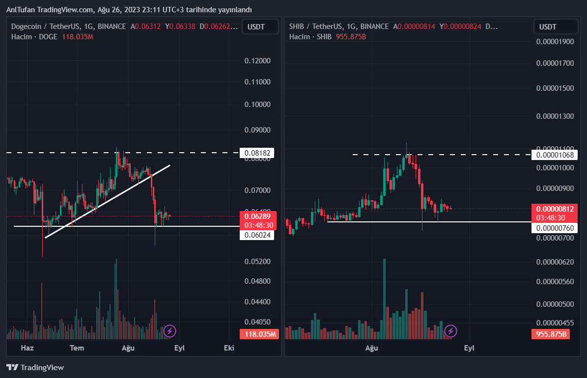 İlerleyen dönemde DOGE’nin 0.060 dolar, SHIB’in ise 0.00000760 dolar desteğini kaybetmemesi, yeni düşüşleri önleyecektir.