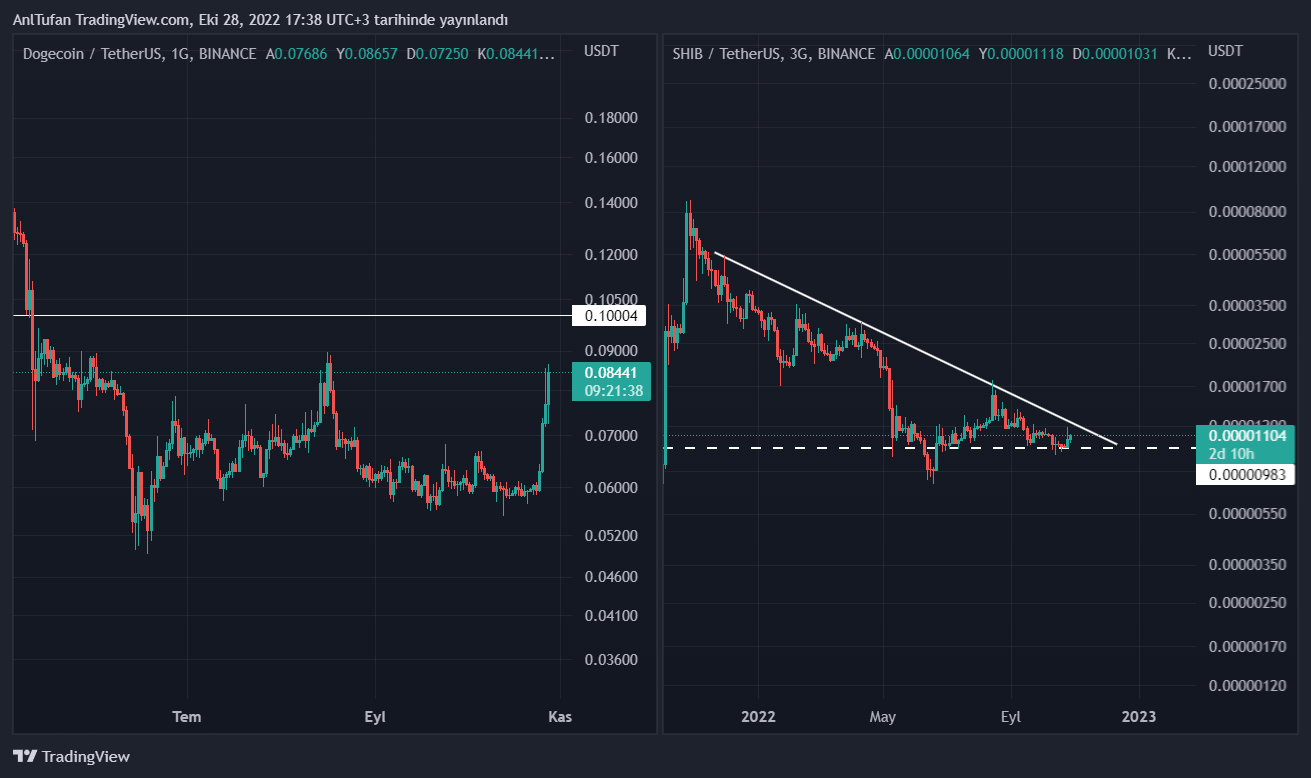 Bu düşen trendin aşılması halinde yukarı yönlü ataklar sergileyebilecek olan SHIB, DOGE’yi tahtından edebilecek mi? merak konusu..