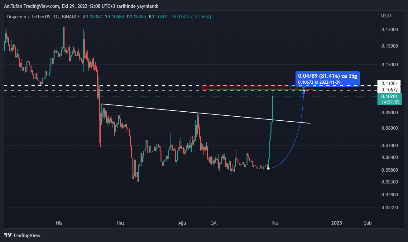 0.1060 – 0.1106 dolar direnç aralığına yükseliş yaşayan Dogecoin, ilerleyen günlerde bu direnç bölgesinden bir düzeltme yapması beklenmekte.