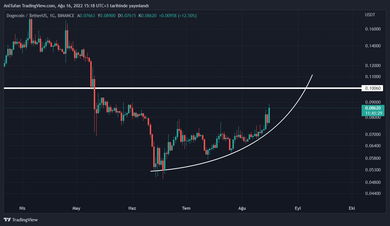 Güzel bir parabolik trend oluşturan Dogecoin, ilerleyen süreçte bu yükselen trend eğrisini kaybetmediği sürece 0.10 dolar seviyelerine ulaşması bekleniyor.