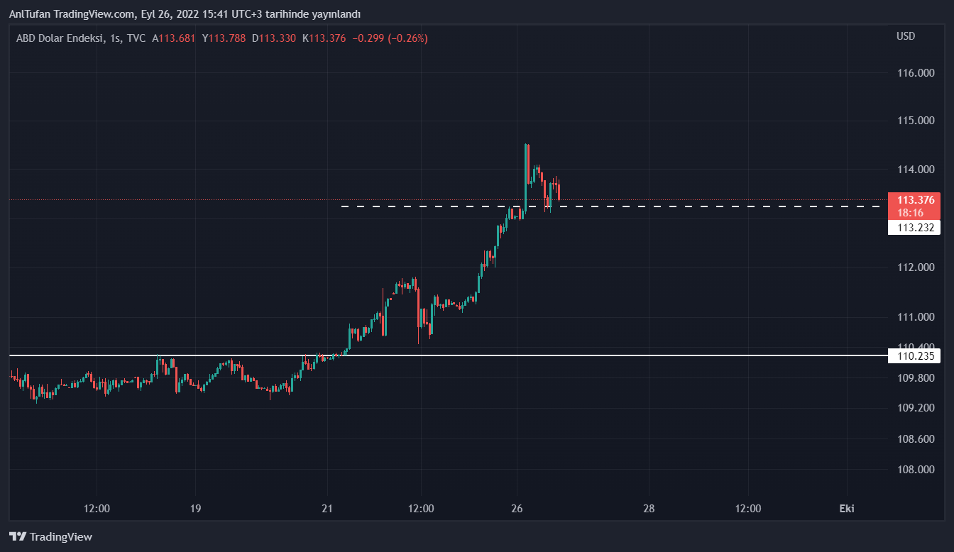Dün gece itibariyle her ne kadar DXY düşüşe geçmeye başlamış olsa da, tekrardan bir direnç seviyesi olan 113.23 doları da kırmayı başardı.