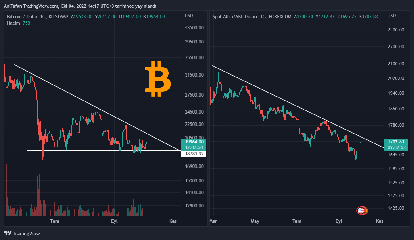 Altın ve Bitcoin dip seviyeden güzel bir tepki vermiş olsa da, halen düşen trendini kırmayı başaramadıkları dikkat çekiyor. İlerleyen günlerde DXY’nin 109 dolar desteğinin altına sarkması, bu ürünlerin düşen trendlerini kırarak devasa yükselişler yaşamasını sağlayabilir.