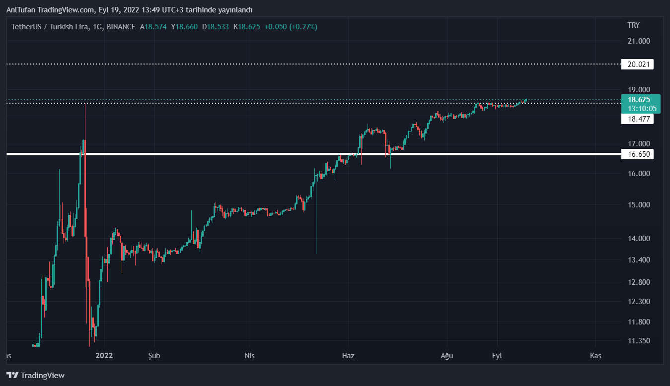 18.62 Türk lirasına ulaşan USDT, 18.47 Türk lirasının geçmesinin ardından 20 Türk lirası seviyelerini hedef olarak belirlemiş durumda.