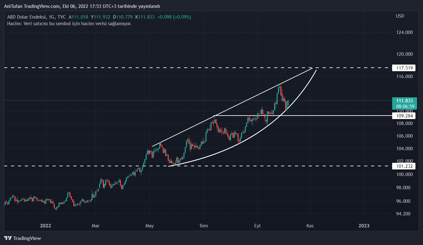 Parabolik bir yükselen trend oluşturan dolar endeksi, bu trend desteğinden sıçramayı başarmış durumda. İlerleyen günlerde ise DXY’de yükselişlerin sertleşeceği tahmin ediliyor.