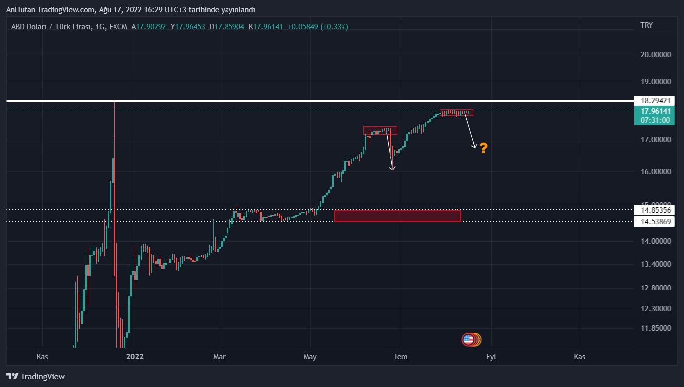 Halen 18 Türk lirasının altında işlem gören ABD doları, ilerleyen günlerde bu direnç noktasını aşamadığı takdirde tekrardan geçtiğimiz günlerde yaşadığı gibi bir düşüş yaşayabilir.
