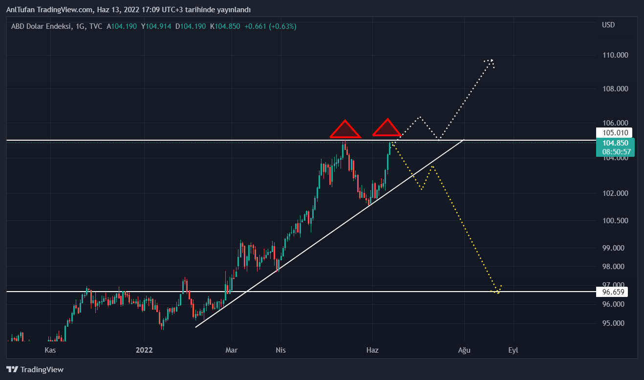 İlerleyen günlerde 105 puan seviyesinin kırılması ABD dolarının çok daha fazla güçlenmesini sağlaması beklenirken, bu seviyelerden olası bir reddedilme ve yükselen trendin kırılması kripto paraların ralliye başlamasını sağlayabilir.