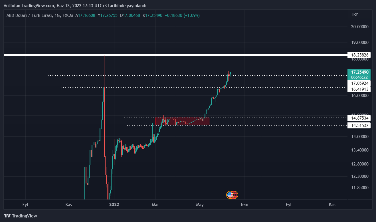 Bugün itibariyle ise 17.25 Türk lirası seviyelerinden işlem gören ABD doları, FED‘in ve Türkiye Cumhuriyeti Merkez Bankasının (TCMB) alacağı faiz kararına göre yön tayin edebilir.