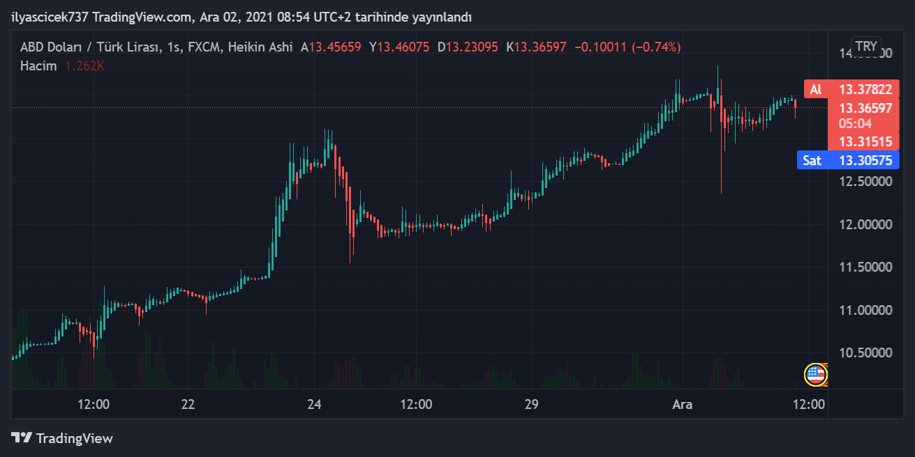 USD/TRY paritesine baktığımızda doların Türk Lirası karşısında 14 seviyesinden 12.48 civarına kadar bir geri çekilme yaşamıştı. Bu çekilme, Cumhurbaşkanı Erdoğan tarafından yapılan açıklamalar doğrultusunda gerçekleşmişti. Ancak dolar haberimizin yayın saati ile USD 13.46 seviyesinden el değiştiriyor.