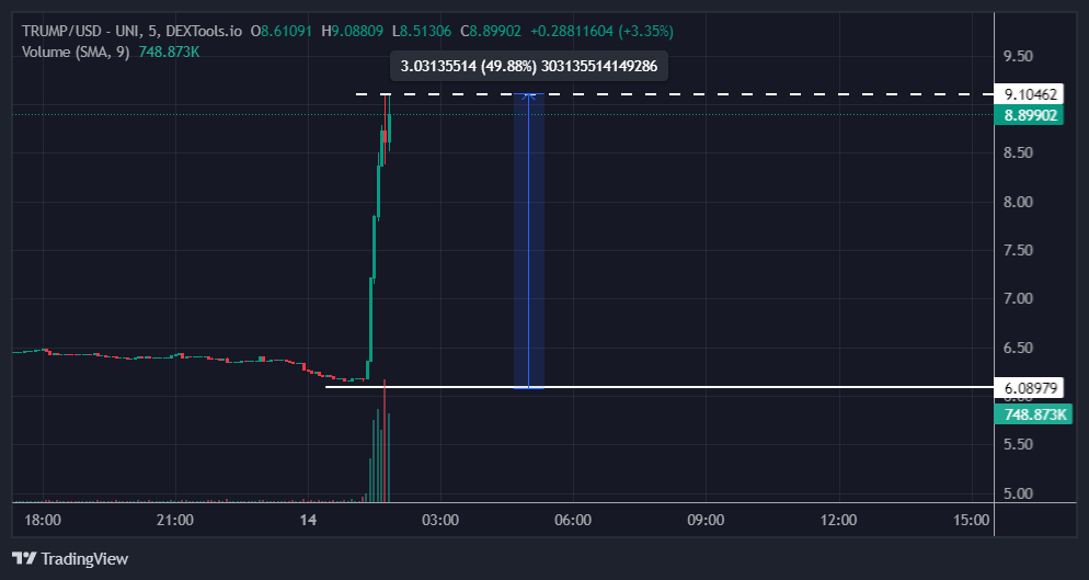 Suikast girişimi sonrasında dakikalar içerisinde %50’lik bir artış yaşayan TRUMP isimli memecoin, önümüzdeki dakikalarda artmaya devam edecek mi? merak konusu…