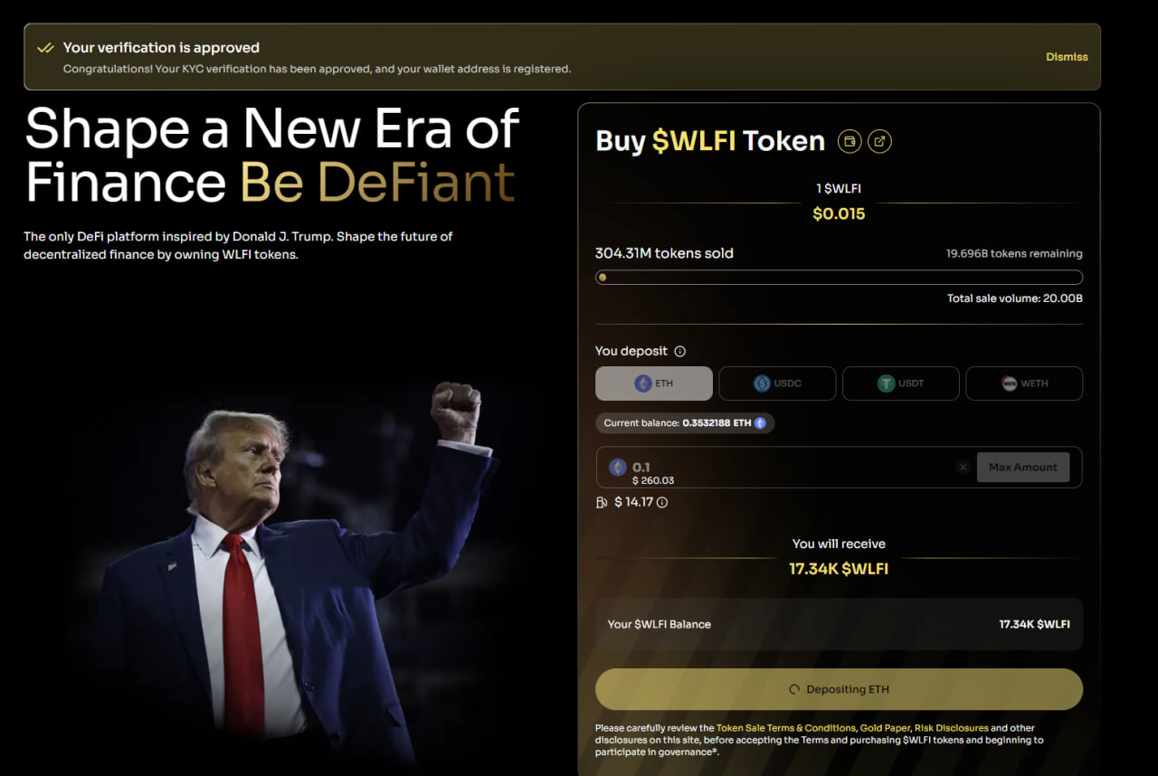 WLFI satışları, Ethereum (ETH), WETH, USDT ve USDC ile gerçekleştirilebiliyor. Bu ön satış turunda toplamda 20B adet WLFI satılacak. Farklı turların yapılıp yapılmayacağı veya maksimum arzın kaç WLFI olacağı ise şimdilik bilinmemekte.