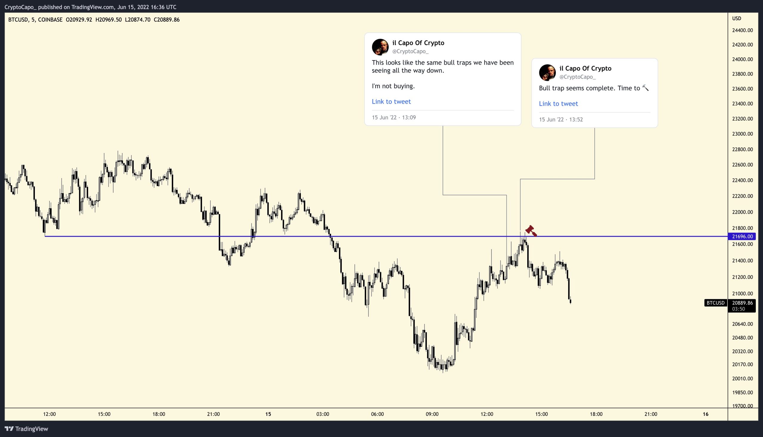İlerleyen süreçte Bitcoin‘in boğa tuzakları ile birlikte çok daha büyük düşüşler yaşayabileceğini inanan Capo, 18 bin dolar seviyelerinden bir yükselişin başlamasını daha olası görmekte.