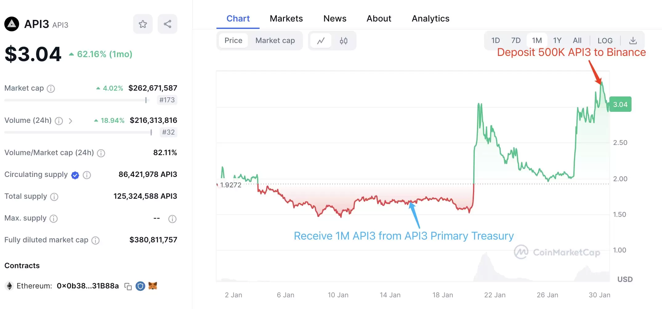 1.6 dolar seviyelerinden API3 alan DWF Labs, fiyatın 3 doları aşmasıyla birlikte kar realize etmiş gibi gözüküyor.