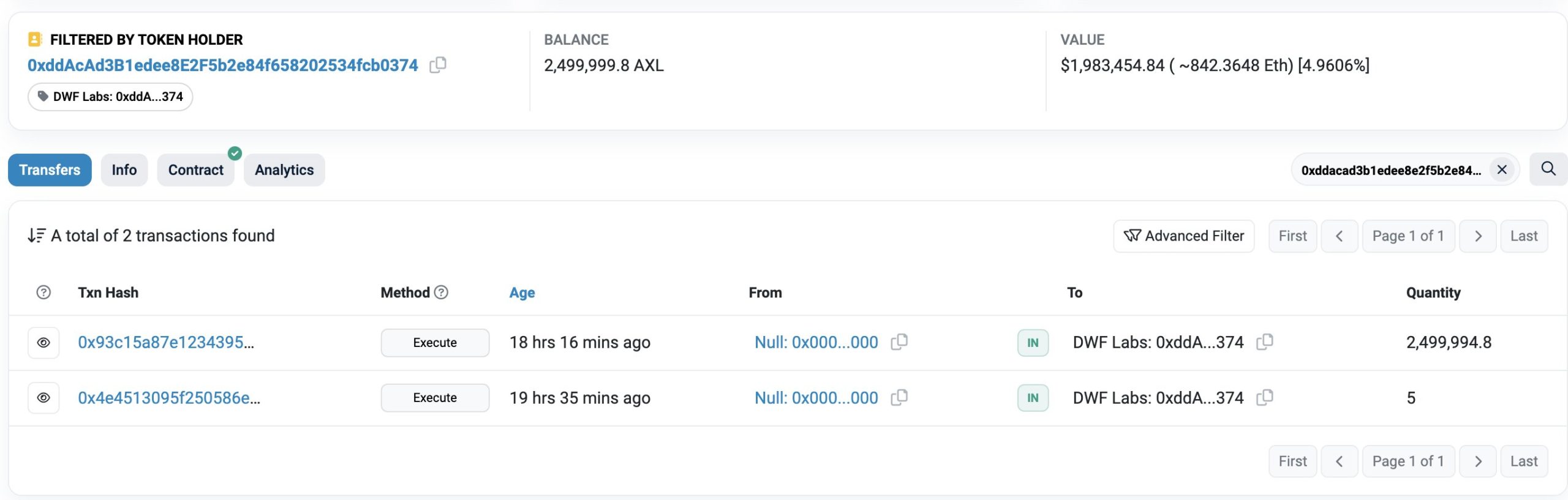 DWF Labs’ın satın alım gerçekleştirdiği ürünler, çok ciddi sıçramalar yapabiliyor. Popüler VC, yakın zamanda UPbit borsasında listelenen bir ürün olan Axelar‘a (AXL) yatırım yaptı.