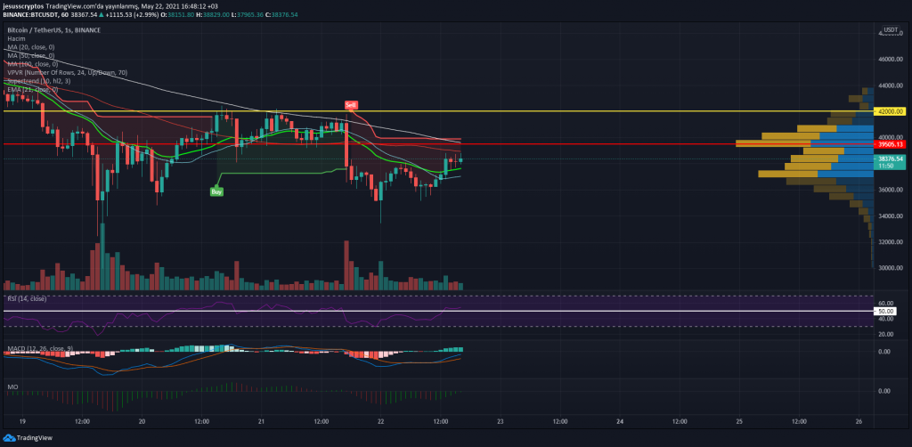 Günlerdir sürekli kötü haber ve yorumlara maruz kalan BTC, bugün gelen Musk tweetiyle %5’e yakın bir yükselişe tabii oldu. Bu yükseliş etkisinin devam ettiği BTC, yayın saati itibariyle 38.180 dolar üzerinden alıcı buluyor.